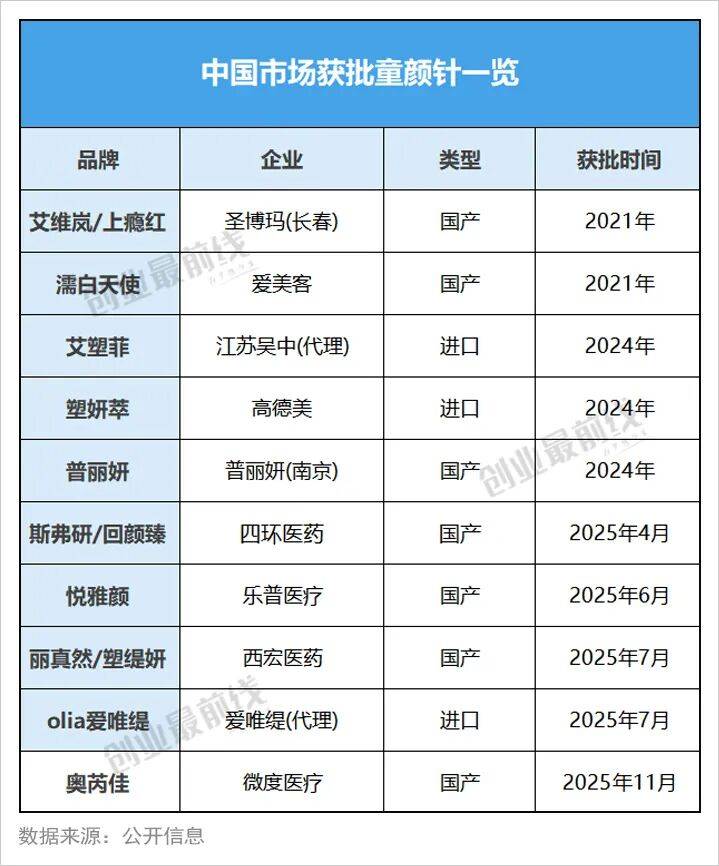 從1到10,童顏針市場格局徹底轉變,艾維嵐“一家獨大”的時代一去不返。而新加入的競爭者,不乏頗具實力的玩家。