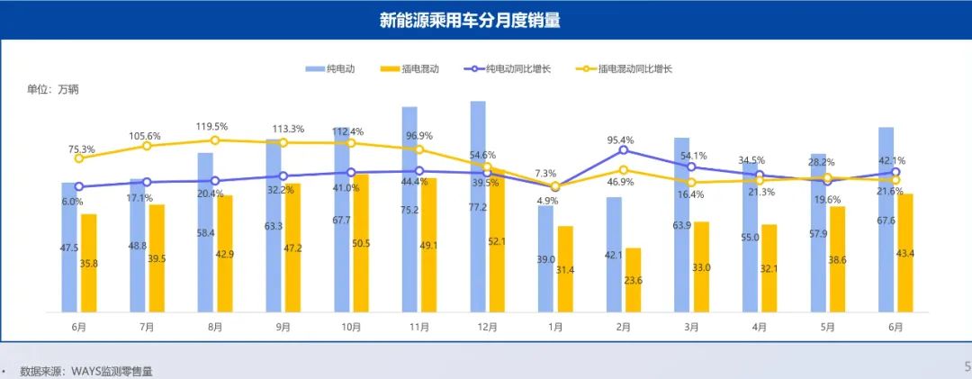 無論是從銷量上看,還是從銷量增速上看,今年上半年,純電動新能源車的市場表現(xiàn)都要更好。中汽協(xié)數(shù)據(jù)顯示,1-6月,純電動車型累計銷量為441.5萬輛,同比增長了46.2%,插電式混合動力車型累計銷量為252.1萬輛,同比增長了31.1%。