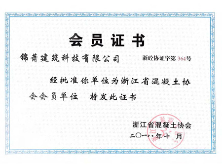 浙江省混凝土協(xié)會(huì)會(huì)員證書(shū)