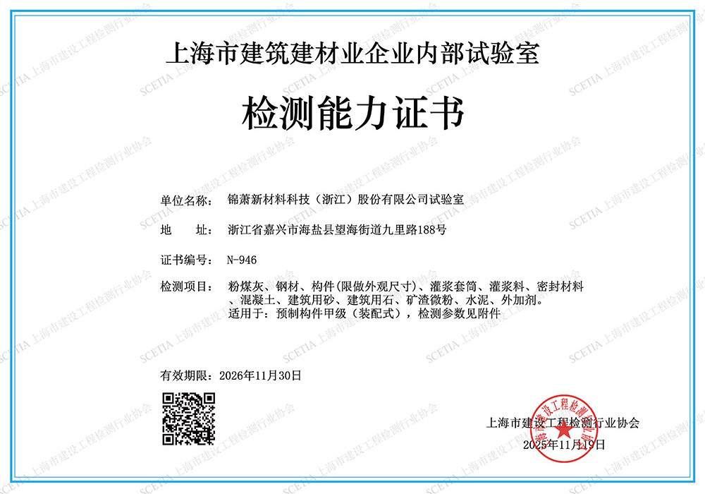上海市建筑建材業(yè)企業(yè)內(nèi)部試驗(yàn)室檢測(cè)能力證書
