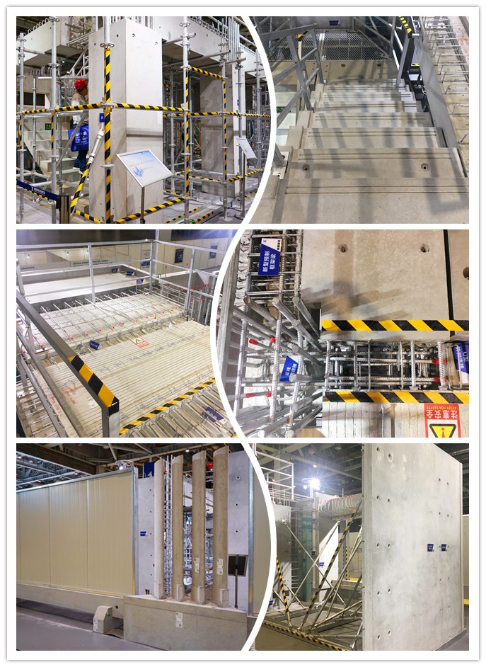 同時展出的還有全預(yù)制異形圍墻和可拆卸式臨時圍墻,結(jié)構(gòu)穩(wěn)定,拆裝方便;車間批量生產(chǎn),大大提高了施工效率以及材料重復(fù)使用次數(shù)。