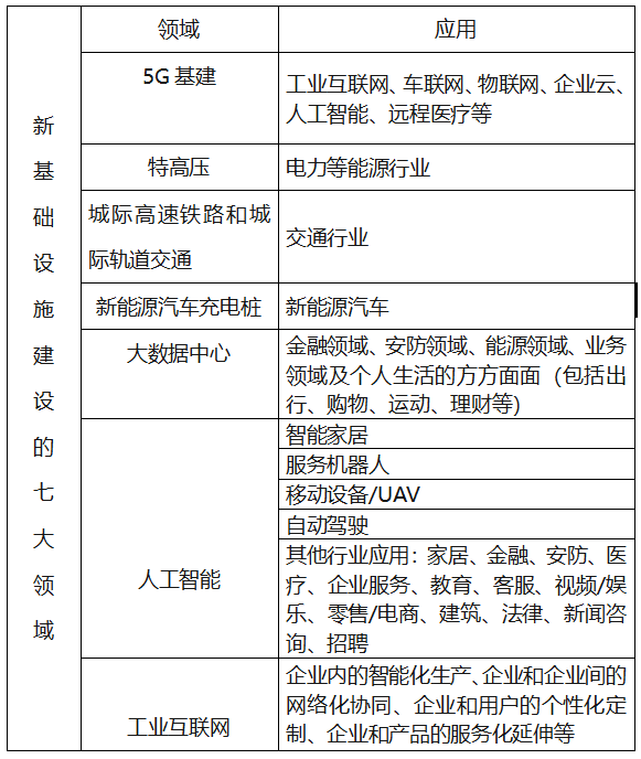 附表:新型基礎設施建設的七大領域