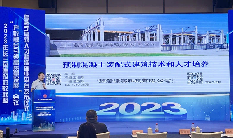 在2023年長三角建筑職教聯(lián)盟“產(chǎn)教融合引領(lǐng)高質(zhì)量發(fā)展”會議暨數(shù)字建筑人才精準(zhǔn)就業(yè)平臺發(fā)布儀式上,錦蕭科技成為長三角建筑職教聯(lián)盟新成員,李軍受邀作關(guān)于預(yù)制混凝土裝配式建筑技術(shù)和人才培養(yǎng)的專題講座。同時,作為該領(lǐng)域?qū)<?,李軍對全上海和浙江省住建廳質(zhì)監(jiān)系統(tǒng)培訓(xùn)作《預(yù)制裝配式整體剪力墻建筑的質(zhì)量控制要點》的講課。
