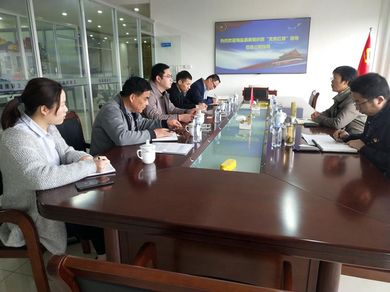 2019年04月02日上午,海鹽縣委組織部副部長夏一飛、組織部兩新科科長朱世鵬、望海街道黨委組織委員繆李偉,”黨務紅領‘’富雪祥一行蒞臨公司指導工作。