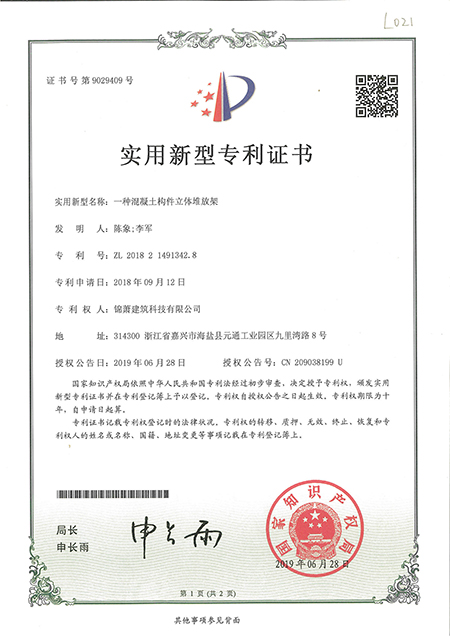 專利證書--一種混凝土構件立體堆放架