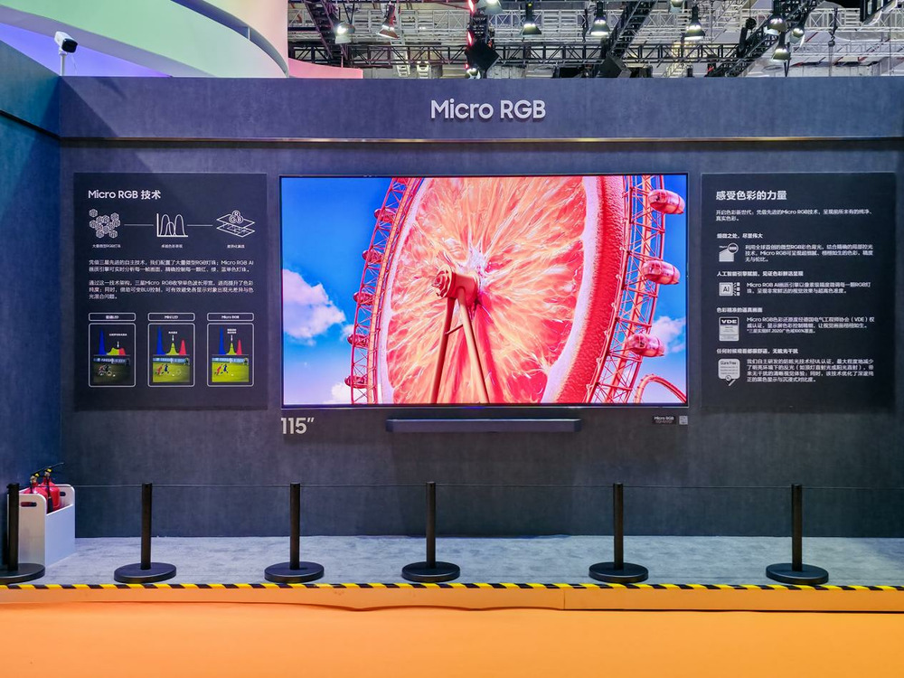 前瞻性的Vision AI解決方案引領(lǐng)電視行業(yè)進(jìn)入主動(dòng)服務(wù)的智能新時(shí)代,而高端顯示產(chǎn)品則是三星卓越的技術(shù)名片。此次展出的MICRO LED與Micro RGB構(gòu)筑起三星在超高端顯示領(lǐng)域的技術(shù)護(hù)城河。144英寸與114英寸三星MICRO LED以磅礴尺寸與震撼視效吸引了眾多參展觀眾駐足,依托先進(jìn)的MICRO AI處理器,能夠?qū)崟r(shí)分析畫面內(nèi)容并進(jìn)行精準(zhǔn)優(yōu)化,數(shù)千萬個(gè)自發(fā)光RGB LED芯片帶來2000nit的峰值亮度,三星獨(dú)家研發(fā)的玻璃基板技術(shù)可實(shí)現(xiàn)更精準(zhǔn)的電子控制,實(shí)現(xiàn)更高的像素密度和更快的響應(yīng)速度。115英寸三星全球首款Micro RGB同樣實(shí)力非凡。其采用自研的Micro RGB技術(shù),以突破性的微米級(jí)RGB LED背光技術(shù)重新定義顯示技術(shù)邊界,81Bit色彩映射技術(shù)與100%BT.2020標(biāo)準(zhǔn)色域覆蓋使該產(chǎn)品榮獲彩通(PANTONE)色彩認(rèn)證與德國VDE頒發(fā)“Micro RGB 精準(zhǔn)色彩”認(rèn)證的雙重權(quán)威認(rèn)可,為全球顯示產(chǎn)業(yè)標(biāo)定了兼具技術(shù)高度與市場(chǎng)價(jià)值的發(fā)展新航向。
