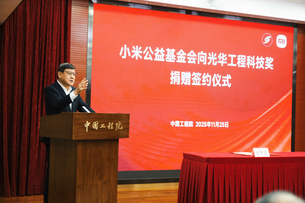 李曉紅院長向雷軍董事長及小米集團(tuán)對我國工程科技事業(yè)發(fā)展的支持,表示誠摯感謝。他指出,家國情懷鑄就了光華獎赤誠厚重的底色,30 年來,光華獎始終緊扣時代脈搏、錨定國家戰(zhàn)略,發(fā)揮對工程科技人才的激勵作用,如今,光華獎的接力棒正式傳遞到小米公益基金會手中。作為世界 500 強企業(yè),小米集團(tuán)在持續(xù)深耕自主創(chuàng)新、攻堅核心技術(shù)的同時,始終積極履行社會責(zé)任。我們堅信,在新的起點上,有小米公益基金會的接續(xù)助力,有社會各界的大力支持,光華獎必將一如既往發(fā)揮人才發(fā)掘和激勵作用,助力企業(yè)、高校、科研院所等創(chuàng)新主體深度協(xié)同,讓更多工程科技英才脫穎而出。